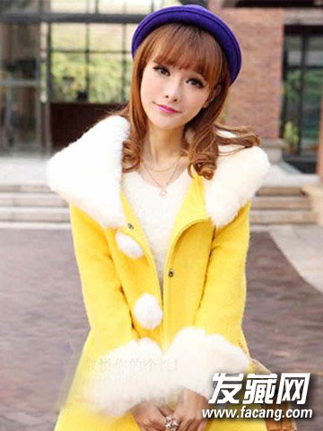 吧,红棕色系的齐刘海卷发,随意的搭在肩头,突显十足时尚靓丽范,修颜的齐刘海,搭配甜美的小脸,时尚的穿着,更显俏丽范。