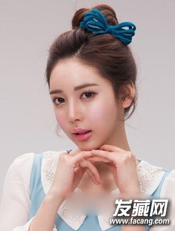 清纯甜美的一款韩式花苞头发型,清爽的露额发型不仅简单而且时尚有气质,对于矮个子的MM来说自然而且显高挑,点缀上头饰效果会更好哦。