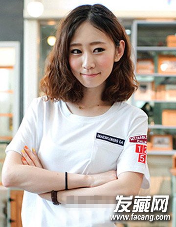 不对称的偏分中短发烫发 韩国流行的9款短发烫发(8)