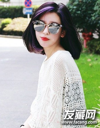 清新自然的齐肩发型的设计,气质的齐肩内扣发型 ,简单的打理不仅时尚而且颇有气质感,再加上中分的设计搭配上紫色的发色不仅有气质而且颇为时尚。