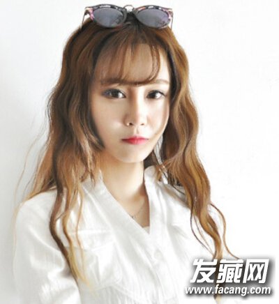 稀疏的空气刘海可以把美眉整个精致的妆容呈现出来,再搭配上一个棕黄色的发色,卡起来也会觉得这个发型比较潮流,头发做一个波浪式的卷发处理,也让拥有这个发型的美眉在气质上加分不少。