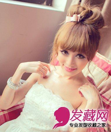 少女系可爱丸子头扎发 美腻的简单丸子头扎发发型(4)