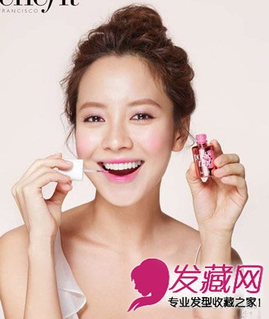 这款很韩系范儿的挑染也很显肤白水嫩,蓬松随意的发髻扎发,露额扎发造型清爽自然,最适合小脸MM。