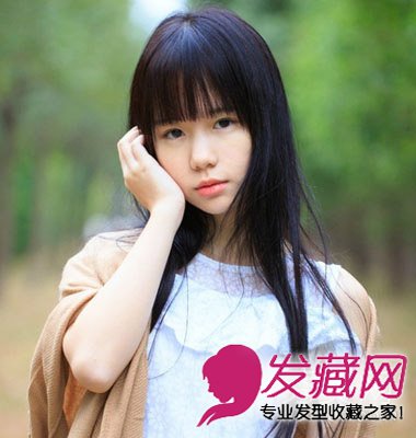 是淑女风MM们的最爱,打薄发丝轻盈柔美,齐刘海披肩发修饰出精致的小颜脸。
