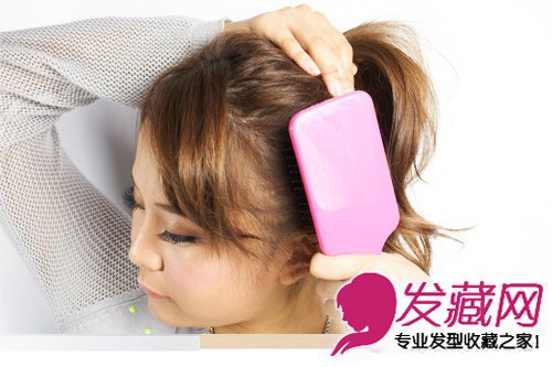 ,将头发用大板梳向后束拢。