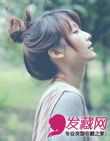 松散的丸子头是矮个子女生的最爱,长发随意的挽成一个丸子头,好看又时尚还显清凉。
