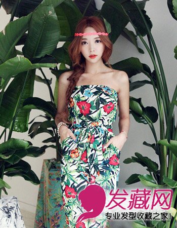 优雅中带有一丝波西米亚度假风的一款无刘海侧边扎发发型,这种中分后的长发随意的侧扎成一个鱼骨辫的形式,再配合时尚的