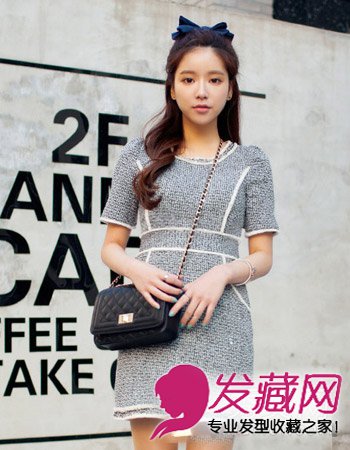 很有小清新范的一款无刘海扎发发型,这种半扎式的长卷发配合 一个简的蝴蝶结发箍的造型可是当下最流行的发型之一了,造型简单还显气质感。