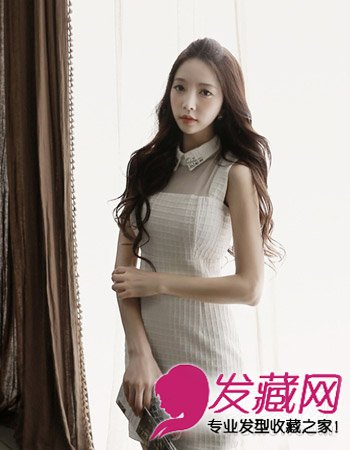 ,这种头顶利用发夹做出的微显高耸的造型最能将脸型凸显得更加清新温柔,而随意的长卷发造型更显优雅气质感。
