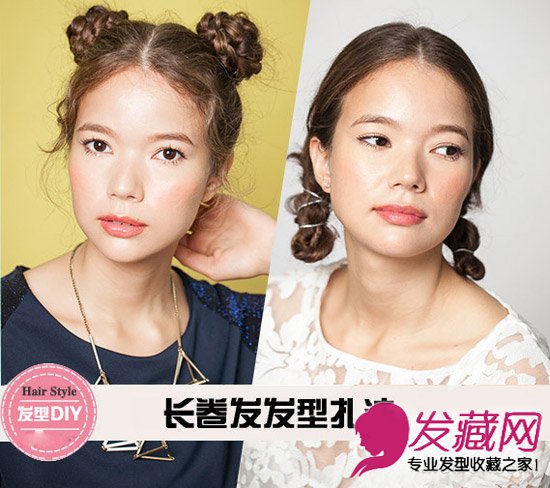 先来看看这两款丸子头扎发吧。俏皮的哪吒头丸子头、优雅灵动的低扎发丸子头,想要哪种都可以拥有。