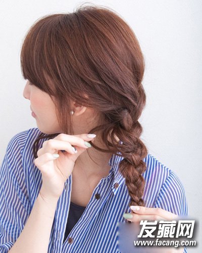 STEP 5:麻花辫上的头发也是要稍稍拉松一点。
