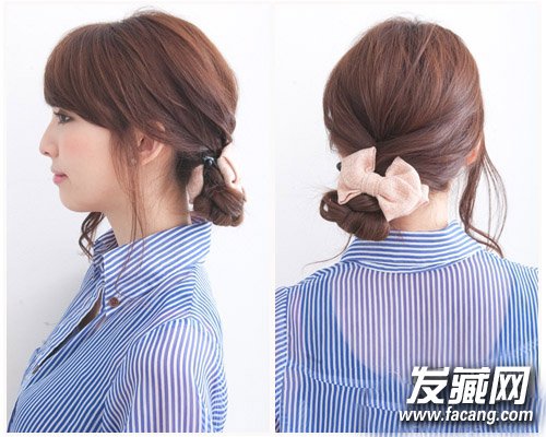 大蝴蝶结发夹显得温婉淑女,大大增加了甜美气质,一侧面的长刘海有些许韵味,是一款充满魅力的约会发型呢。