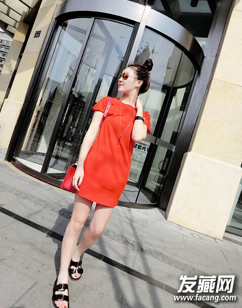 颜色,粽色和绿色,这种不同显得更为个性,简单的丸子头扎发。