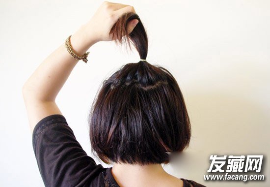 首先先将后上方的头发随性绑起来,以免一会儿绑短发时绑到它们。