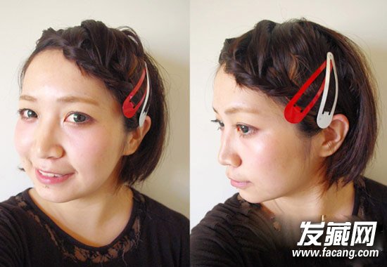 第三款是个比较有个性又清爽的造型啦!因为将厚重的刘海给收了起来,露出的额头超凉爽超舒服哦~再选个比较夸张的卡子来强调存在感,活泼又有亲和力!