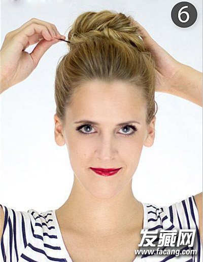 6、最后用一字夹固定好就可以了。这样一个漂亮的盘发就形成了,高扎的丸子头显高更时尚。