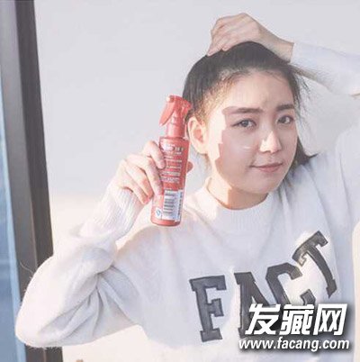 3、把所有头发全都集结在头顶位置,用左手抓住,如果此刻你见到头上有比较多碎发,也可以用润发水喷一下,喷过之后就不会那么乱咯。