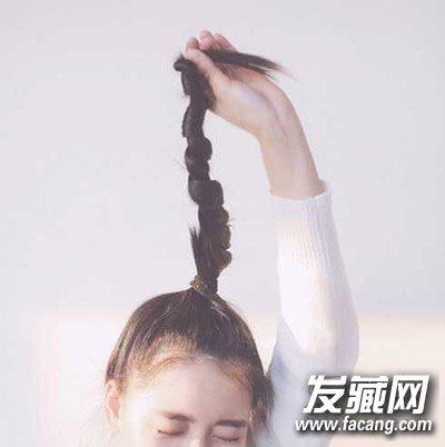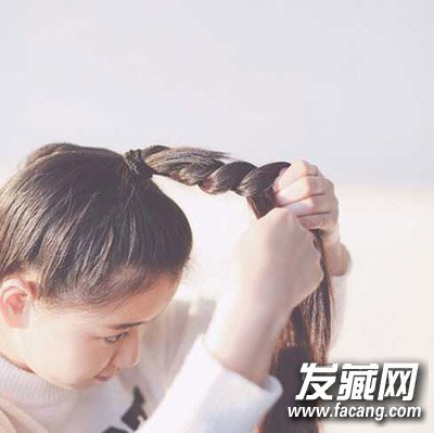 步骤7、将两束头发像麻花一样缠绕起来,缠绕的时候不宜太松或太紧,若太松则很散,若太紧则会非常紧绷不自然哦;
