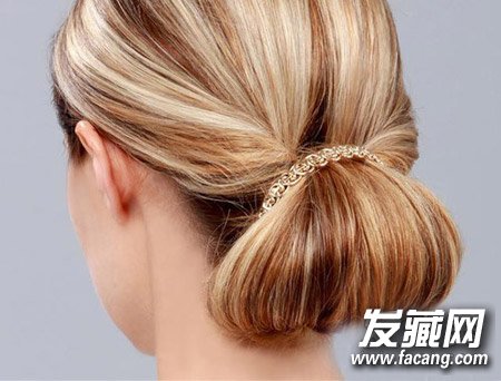 先来看看这款内扣丸子头吧。饱满的丸子头造型圆润立体,编织纹理的发带增加了几分异域风情,优雅吸睛。