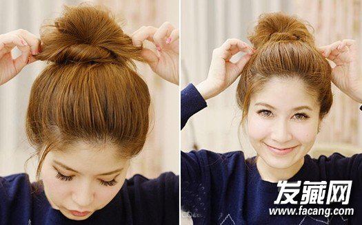 韩国丸子头发型教程 无刘海式的丸子头简单几步搞定(6)