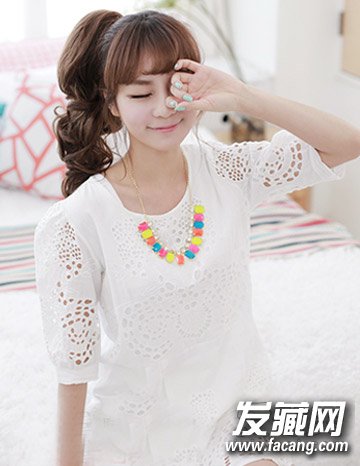 可爱的马尾辫发型,充满潮气蓬勃的青春气息,马尾辫卷发的设计,更是增添了几分时尚感。