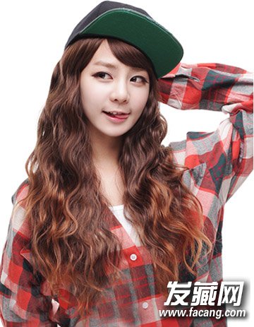 俏皮感十足的长发蛋卷头搭配可爱的鸭舌帽,十足的清凉打扮,非常适合春夏季节的一款