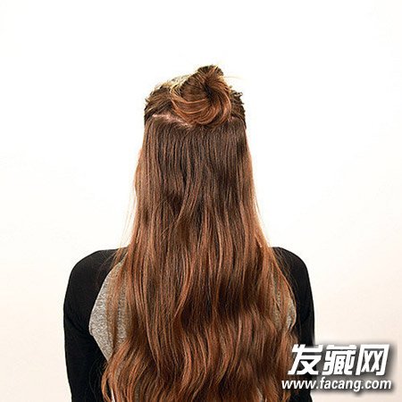 别小看小小的丸子头,它也可以做出不同样的变化,这款丸子发髻做成面包圈的形状就非常有趣。