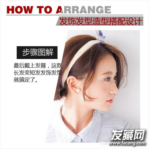 最后戴上发箍,这款长发变短发发饰发型就搞定了.
