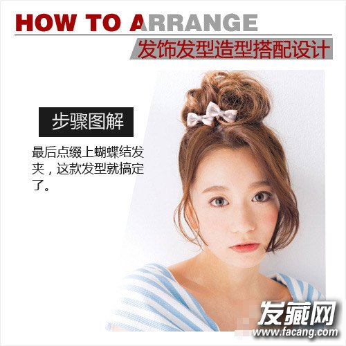 最后点缀上蝴蝶结发夹,这款发型就搞定了。