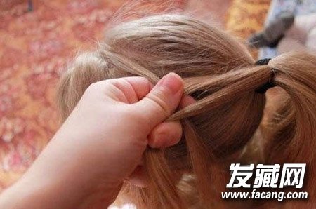 再从马尾里扯出一绺头发加在刚才的头发里。就像编蝎子辫一样。