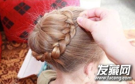 编发丸子头扎法技巧图解 麻花辫版的丸子头(5)