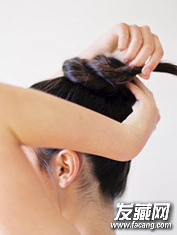 长发丸子头扎法教程step4:将发辫缠绕成丸子头。