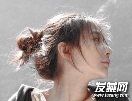 刘海扎不起来的时候不要勉强,像这位美女,绑不起来的刘海发丝留着,后面简单扎一个丸子头,刘海发丝带来的清新朦胧感看起来特别美,气质很棒哦!出街或约会,这款气质型的丸子头能为你带来不少回头率哦!