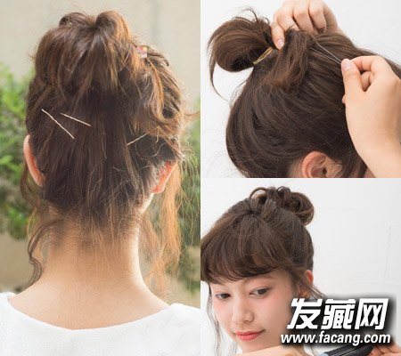 蓬松丸子头扎法 刘海点缀更吸睛(4)