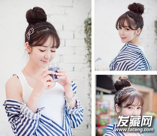 这款丸子头造型简单,突出自然感,丸子头搭配空气