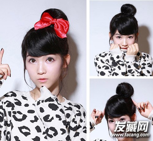 侧丸子头轻松俏皮,搭配可爱夸张发饰,更显活泼,大发饰可以完美修饰发量不足,即使发量少的MM也可以轻松打造丸子头。