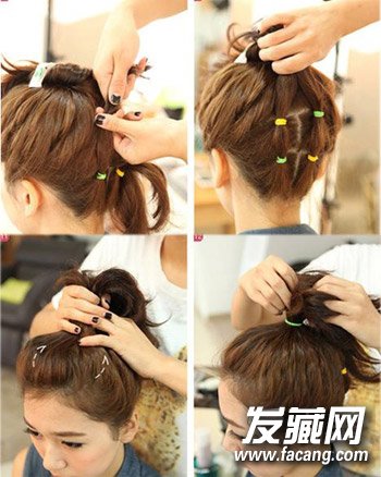 凌乱丸子头的扎法图解 清爽减龄