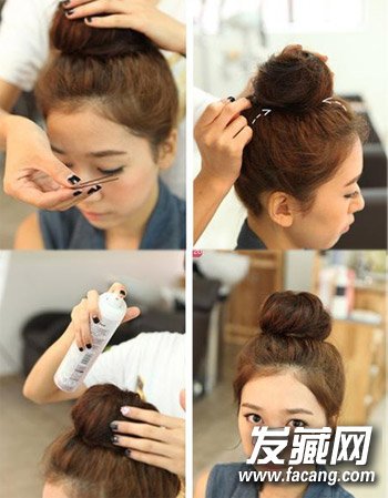 6、用发卡将收尾的地方固定住,然后碰上定型液,这样一款好看的丸子头就完成了。