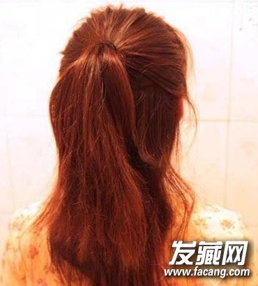 step 1:将头发上下分成两部分,将上面头发用皮筋固定起来。