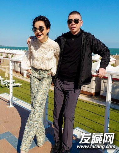 看许晴电影节之外美拍,还是一款蓬松盘发,搭配墨镜娴静淑女,和冯小刚一起格外抢镜。