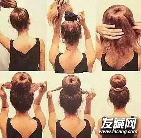 2:编好之后直接抓着编发的发尾在头顶绕圈,绕成饱满圆润的丸子头,最后再用小发夹固定即可。这样一款可爱的丸子头发型就完成了。