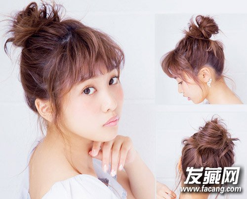 给人的感觉萌萌哒很可爱。随意散落的发丝没有破坏造型的美感,反而增添了气质。所以头发比较碎的妹子也可以扎这款丸子头。