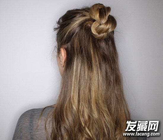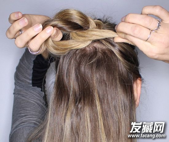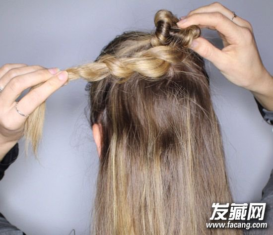 Step4、将编发在头顶绕一圈,同一个方向哦,形成一个比较小的丸子头,但是不要太紧。
