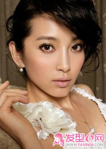 3、干性发质干燥蓬松,是最容易造型的发质。打造重点松散盘发+整体卷发+刘海儿贴头