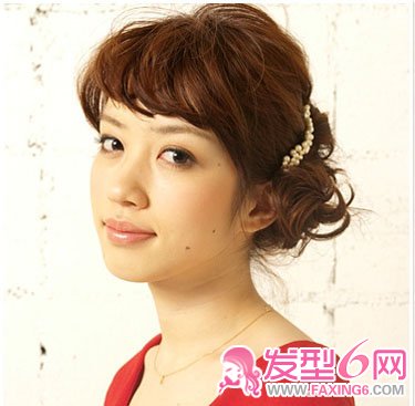 十分女性化的一款短发发型,这样的盘发新娘发型看起来设计简约,非常大方得体,无论是新郎还是公公婆婆相信都会十分满意。