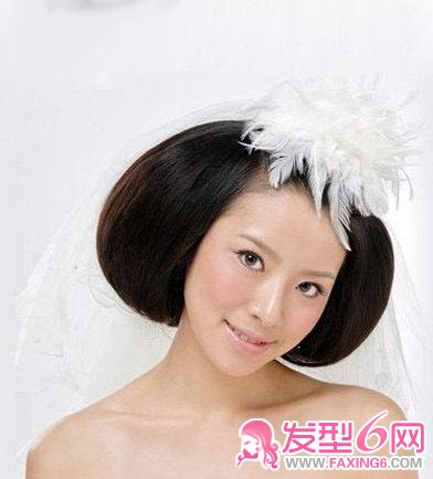 新娘发型点评羽毛和白色搭配的新娘头饰点缀日式波波头,可爱纯真。