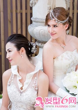 将长发一半盘起、一半垂下的Half up-half down,是英美新娘发型,这款发式极简单,又可在前额附近配搭上一些造型别致的发饰,比如晶莹闪亮的珠宝系列,即可彰显心思、提升整个发型的时尚度。 不论是搭配婚纱还是旗袍,纯洁典雅的珍珠头饰都会让新娘显得更加妩媚动人。一般来说,珍珠发饰比较适宜搭配真丝、雪纺的婚纱。