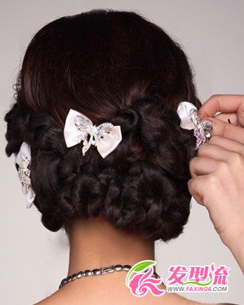 6最后再配以蝴蝶结珍珠饰品,显得端庄文雅。