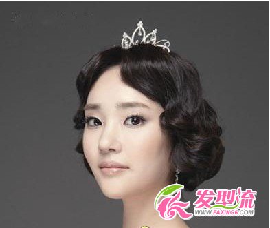 短发新娘可以把重点放在刘海的设计,刘海打造蓬松的卷发造型,体现时尚新娘的感觉。分界处别上红黑相配的发饰,充满夜上海的情怀。