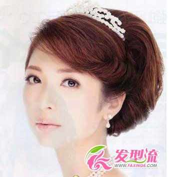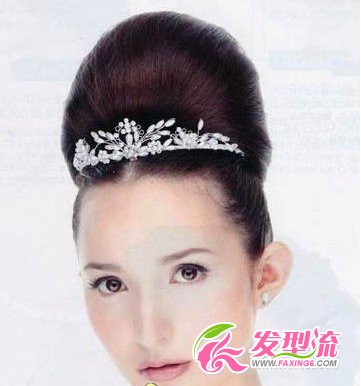 高耸的发髻是这款发型图片的亮点,乌黑光滑的发丝宛如一个黑珍珠,饱满的发髻搭配白珍珠让这款新娘发型充满了异域风情。